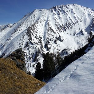 Traverzujeme vrchol s dostatkem sněhu, sníh odhadem bez problémů vydrží do začátku května. Pro sjezdy je možné volit mezi třemi úzkými strmými stráněmi, což musí být za dobrých prašanových podmínek výborný zážitek.