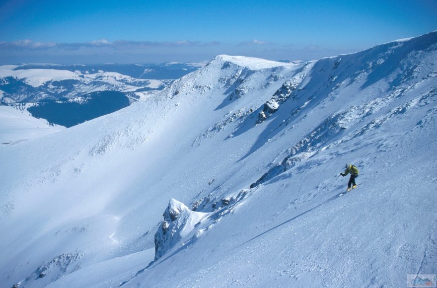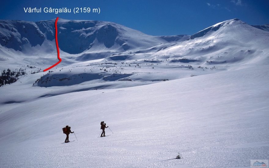 Sjezdových variant nabízí severní svahy od hlavního hřebene nepřeberné množství. Podle aktuálních sněhových podmínek, lavinového nebezpečí a lyžařského umu skupiny zvolíme buď objízdnou trasu mírnějšími svahy (přes sedlo Saua Gărgălău) nebo některý ze strmých žlabů směřujících k severu v oblasti vrcholu.