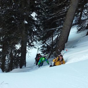V piatok znova prašan, slniečko, frírajdy, žľaby a žľabíky a lesy a lesíky. A už aj viac ľudí – lyžiarov asi 30. Posledný deň sobota, tá istá pesnička- plech a prašan. Naplánovali sme výšľap k meteorologickej stanici a odtiaľ po hrebeni. Tu už mali chalani „nachystaný“ nad lesom cvičný strmý svah, kde sme trénovali brzdenie cepínom a potom sa zase hrali s vyhľadávaním pípakov. Nakoniec sme sa ešte pomotali po lese a zjazdili to neporušeným svahom dole na svážnicu, po ktorej sme prišli až k chatke.