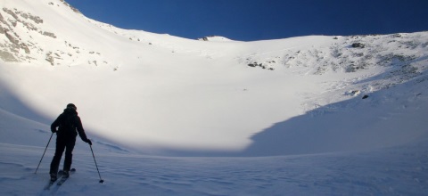 Jak uvádí Stanislav Klaučo ve své knize Výber skialpinistických a lyžiarských túr: “Lyžuje se obyčajne po širokých snehových poliach, ktoré sme pri výstupe videli vĺavo od vrcholu. Zideme nimi až na dno Divej kotliny, odkiaĺ lyžujeme dalej v smere výstupu až na Zbojnicku chatu.”