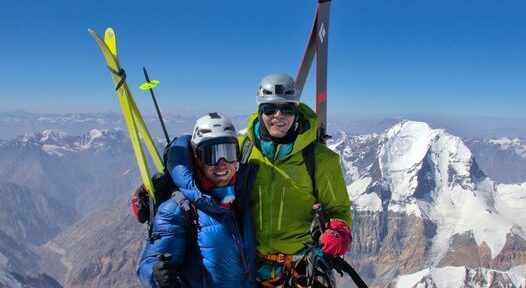 Obujeme se do lyží, několikrát kontrolujeme pevnost vázání i přezkáčů a pak už se skrze sedlo v 7400 pouštíme do ledového štítu, který stihl změknout jen pro ty nejopatrnější oblouky. V našem kempu v 7000 jsme kolem páté a rychle volíme rozhodnutí ujet zhoršující se prognóze počasí do nižší výšky, a tak rychle balíme stan a volíme sjezd v zapadajícím slunci na plato do 6000 metrů. Pořádný prašan nacházíme až na posledních 200 výškových metrech, jinak je sjezd spíš bojem na zmrzlých sastrugách.
