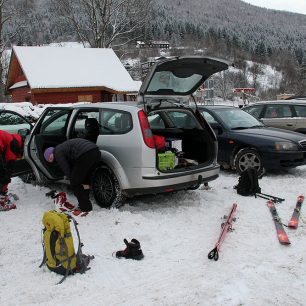 V sobotu 7. prosince bylo během Výroční schůze 155. horolezeckého oddílu Vsetín 2013 navrženo provětrání stoupacích pásů na nedělní půl den. Ačkoliv mnozí nevěřili, že se po výročce podaří vstát v brzkých ranních hodinách – před šestou ráno jsme odjížděli ze Vsetína. Naším cílem bylo podívat se jak to vypadá se sněhem v oblasti Poludňového grúňu (1460 m).