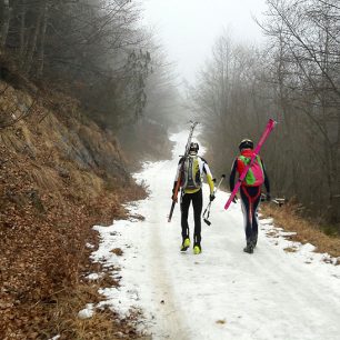 Po příjezdu do Alpago Piancavallo bylo patnáct stupňů nad nulou a po sněhu ani památky. Česká výprava byla ubytována na agroturistickém statku, takže večer při příjezdu našli majitele, jak dojí krávy. Druhý den ráno proběhla prohlídka trati, u níž změnili místo startu. Od auta je to půl hodiny pěšky, jelikož chybí sníh. Od startu to jde už na lyžích, ale je to drsné kvůli nedostatku sněhu. Sjezd je plný kamení a některé úseky úplně nesjízdné, takže se to bude běhat na botách. Sjezdy budou dost o život.