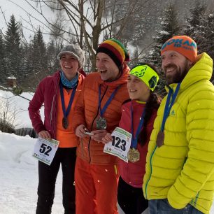 Naše beskydská delegace zaznamenala nebývalý úspěch a příští den hrdě vezeme domů všechny barvy medailí. Já s Pájou stříbro z Mixů, Klára se svou partačkou zlato z velkých žen a Jiřík bronz z kategorie velkých chlapů. Noc Tuleních pásů nás prostě dostala a my se příští rok určitě zase vrátíme! Tímto bych moc ráda poděkovala za obdivuhodný výkon skvělému parťákovi Pavlovi, dále Klárce a Jiříkovi, Alici, Tomovi a Radkovi za příjemnou cestu do Krkonoš a zpět. V neposlední řadě musím poděkovat za podporu ostravského týmu ALPSPORT.CZ, kteří mi poskytují skvělé vybavení od Scarpa Czech nejen na to moje běhání, ale take na skimo radosti, moc si jejich podpory vážím.
